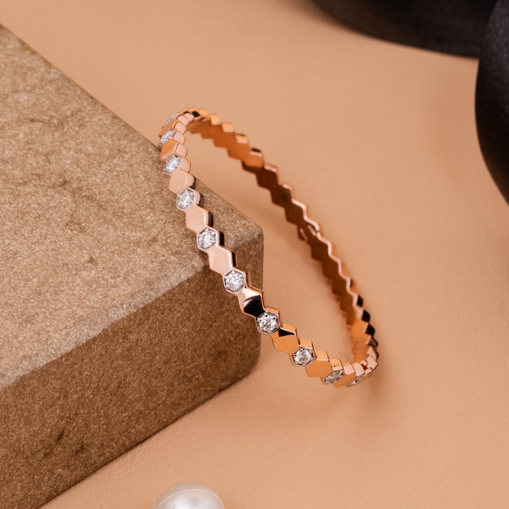 A contemporary faceted bracelet adorned with luminous crystals, designed to highlight modern elegance and everyday sophistication.