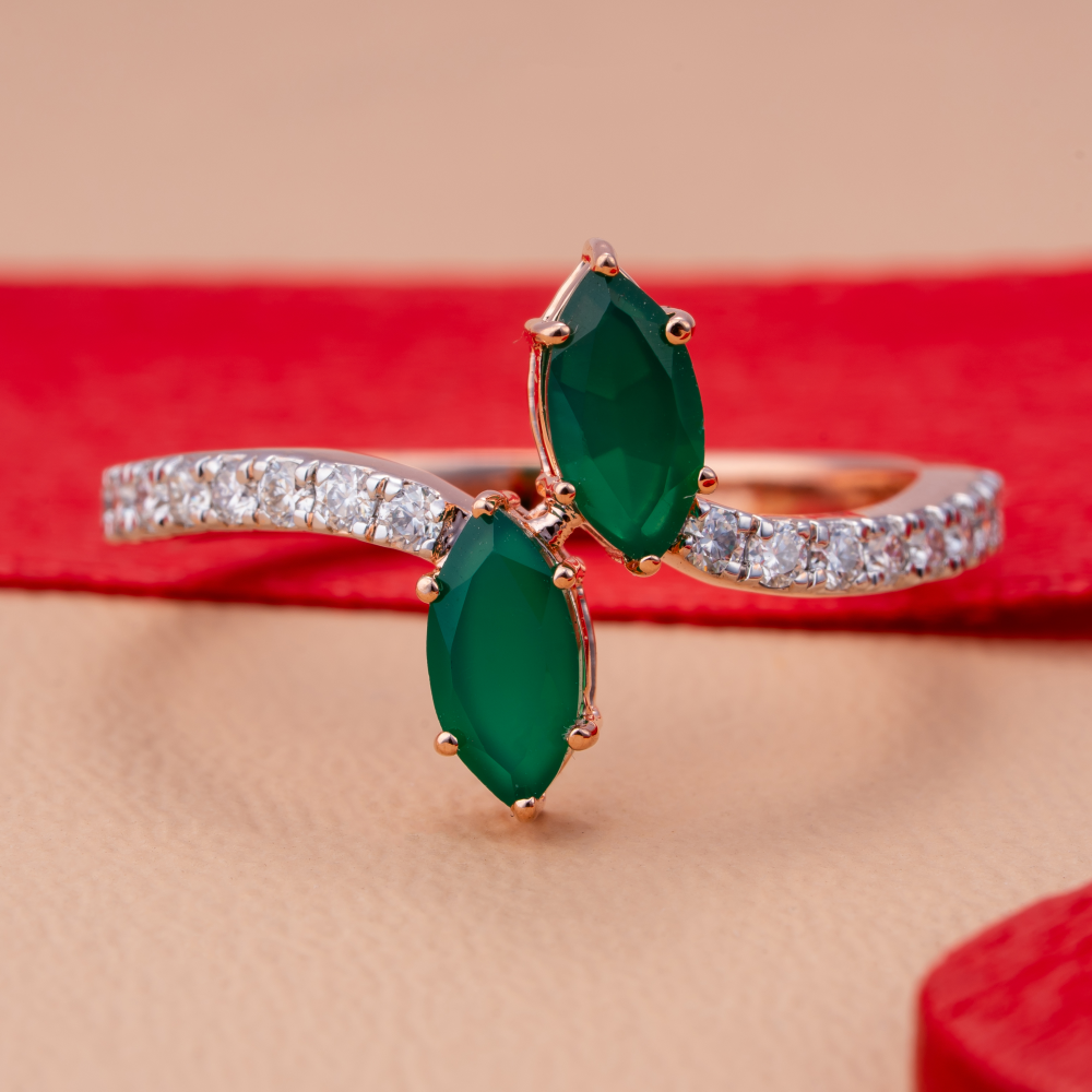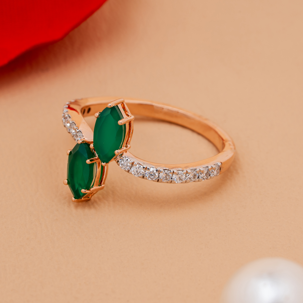 A luxurious rose gold spiral ring with pavé-set diamonds that create a modern and captivating twist.